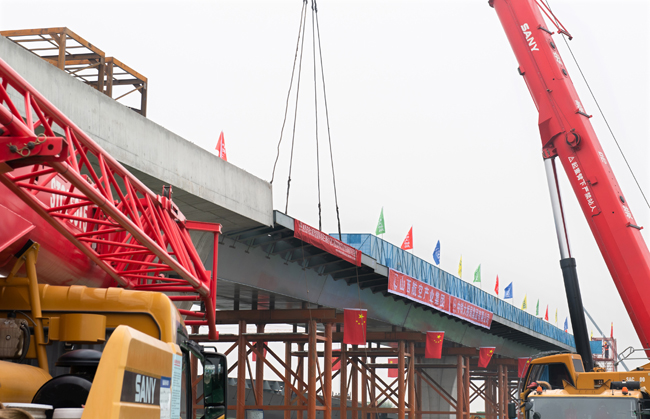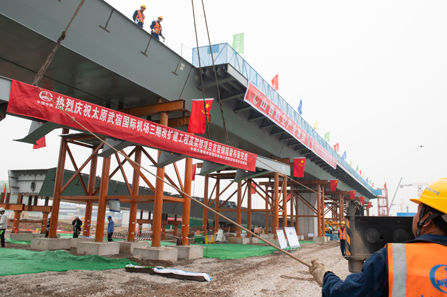 2024年9月27日,隨著太原武宿國際機場三期改擴建工程高架橋項目首聯(lián)鋼箱梁最后一節(jié)挑臂穩(wěn)穩(wěn)地落在支架上,標(biāo)志著高架橋項目建設(shè)取得關(guān)鍵性進(jìn)展,進(jìn)入鋼箱梁架設(shè)新階段。